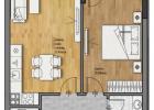 Едно от жилищата, което ви предлагаме е двустайно, което разполага с дневна с кухненски бокс и трапезария, спалня,, входно антре, складово помещение, баня с wc, тераса. С обща площ 74,09 кв.м.