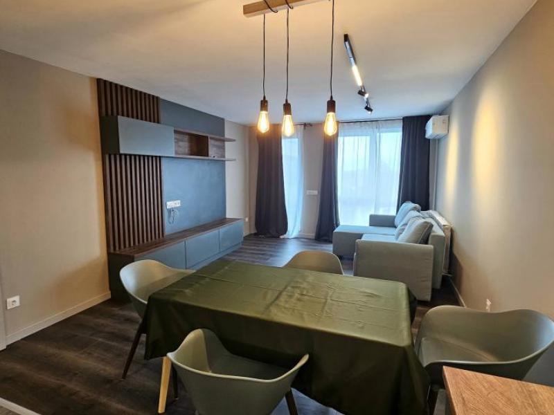 "ЗЛАТЕН КЛЮЧ- НЕДВИЖИМИ ИМОТИ" предлага за продажба НОВ, ДВУСТАЕН АПАРТАМЕНТ в жилищен комплекс "ПАНОРАМА ПАРК ЗАПАД 2 " в кв.Христо Смирненски. Стилно завършен и обзаведен по дизайнерски проект, електроуреди от висок клас! ЮЖНО ИЗЛОЖЕНИЕ! Състои се от ГОЛЯМА дневна с трапезария и кухненски бокс- 28 кв.м, ГОЛЯМА спалня- 17 кв.м, просторно входно антре, баня с тоалетна, перално помещение и тераса. Комплексът е луксозно завършен с контролиран достъп, отлично поддържани общи части, разполагащ с търговски площи, озеленен вътрешен двор, в който са ситуирани зона за отдих, фитнес, детска площадка.