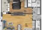 Жилището, което предлагаме за продажба е двустайно, представляващо: дневна с трапезария и кухненски бокс- 24,26 кв.м, спалня- 12,90 кв.м, баня с тоалетна, входно антре, перално помещение и тераса.