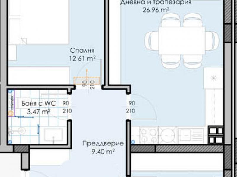 Предложение за TРИСТАЕН АПАРТАМЕНТ със следното разпределение: дневна с кухненски бокс и трапезария, две спални, две бани + wc, преддверие, лоджия и прилежащо избено помещение. Обща площ: 104,88 кв.м.