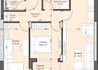 Предложение за покупка на тристаен апартамент, представляващ: дневна с кухненски бокс, две спални, баня с тоалетна, отделно втора тоалетна, преддверие, склад и тераса.