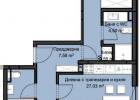 Едно от жилищата, което ви предлагаме е тристайно с изложение: изток/юг/север, представляващо: дневна с кухненски бокс и трапезария, две спални, две бани с тоалетна, две лоджии и избено помещение.